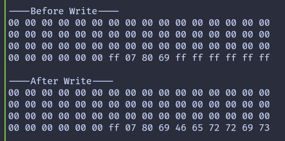 After the program finishes running, power off the board and remove the microSD card. When the card is inserted into a computer, a file named FERRIS.TXT should be present in the root directory.